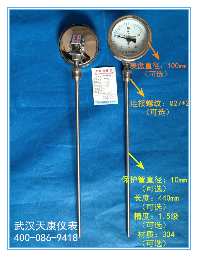 重复性:双金属温度计重复性极限范围应不大于基本误差限绝对值的1/2主要技术参数