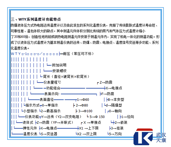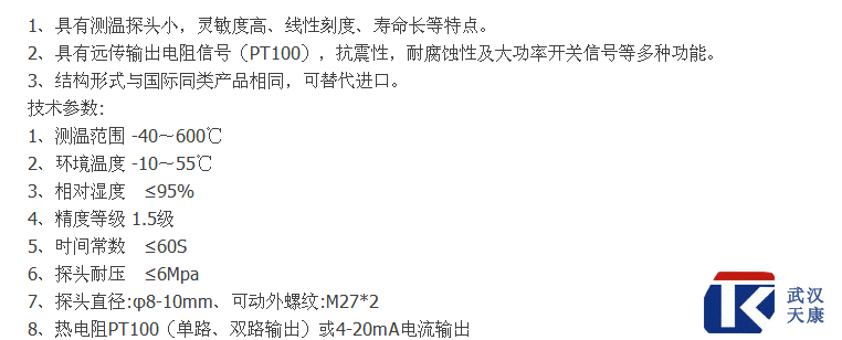 产品名称:液体压力式温度计 品牌:凯发平台·(中国区)官方网站 产品型号:WTYY-1031 产品规格:L=150MM 温度范围:0-150℃ 连接方式:M16*1.5螺纹 (可根据具体实际需要定做) 订货请注明:探杆长度L=?;温度范围;连接方式;